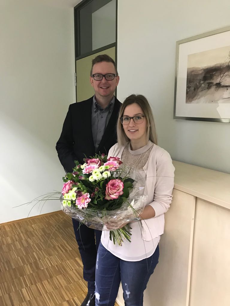 Am Montag, den 22.01.2018, hatten die Inhaber Ingeborg und Christian Schrattenberger die angenehme Aufgabe, Ihrer Mitarbeiterin, Frau Judith Spieß, ganz herzlich zu ihrer bestandenen Prüfung zur "Fachassistentin Lohn und Gehalt" zu gratulieren. Herr Schrattenberger brachte in Form eines Blumenstraußes seinen Dank zum Ausdruck: " Es ist nicht mehr selbstverständlich, neben einer hauptberuflichen Tätigkeit als Steuerfachangstellte sieben Monate lang an den Wochenenden noch die Schulbank zu drücken." Frau Spieß steht ab sofort in der Kanzlei sowohl den Mandanten als auch den Mitarbeitern in spezielleren Lohn- und Gehaltsfragen zur Verfügung. Mit einem Glas Sekt wurde gemeinsam mit den Kolleginnen und Kollegen auf den Erfolg angestoßen.