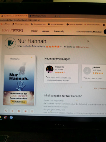 Mein Buch "Nur Hannah." wurde für den lovelybooks Award nominiert.